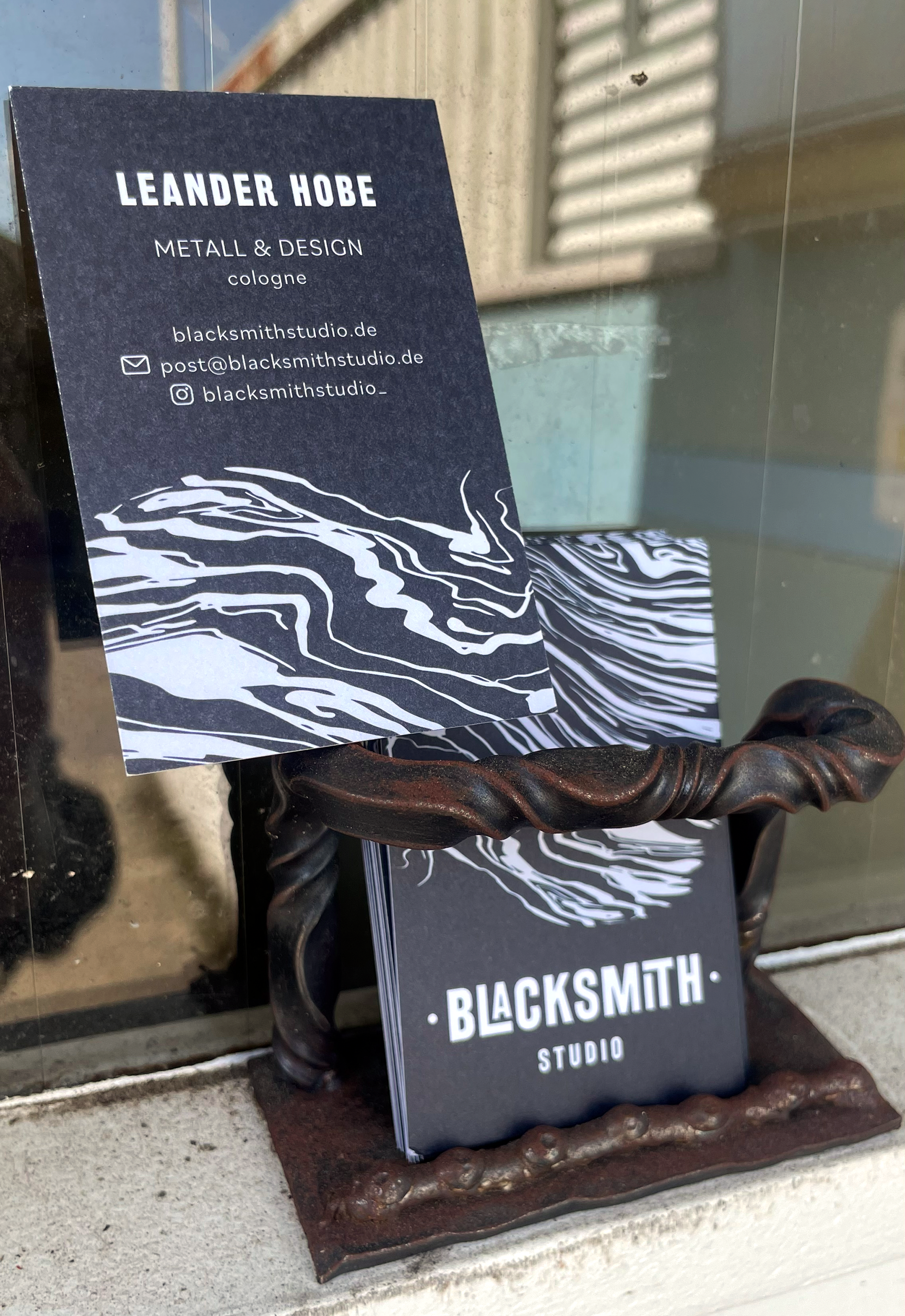 The pattern that is created when knives are forged, known as "damask knives", was taken up in the business cards. In combination with the print on offset paper, this creates a beautiful tactile effect.