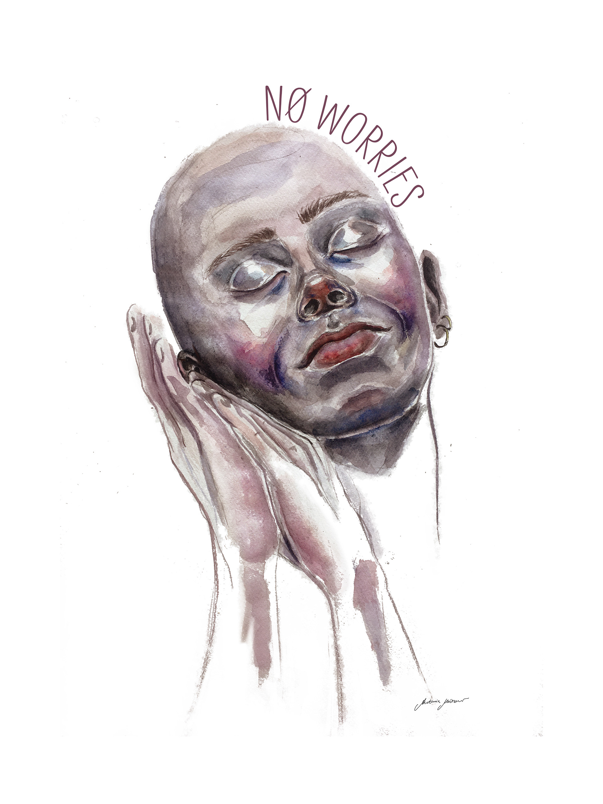 My interpretation of the theme "nø worries". A competition to help artists in times of corona. Watercolor and digital editing.